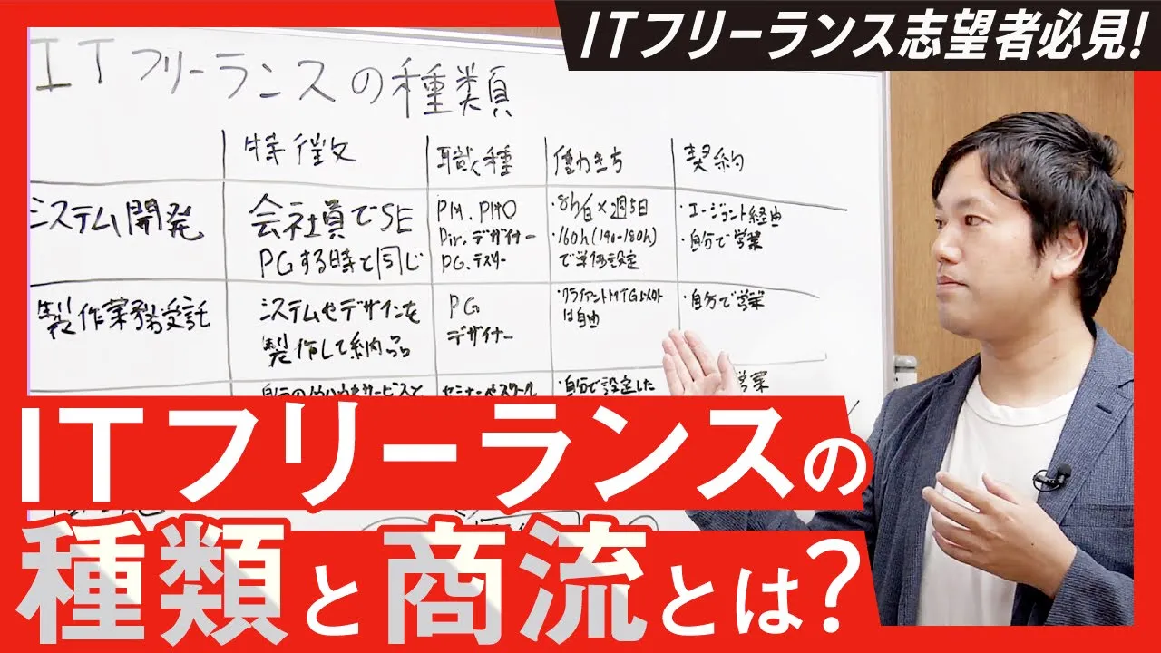 本日は、「ITフリーランスの種類」と「種類ごとの商流」について紹介します。